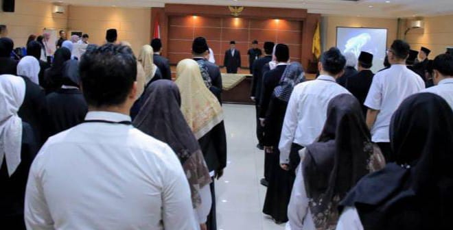 Pelantikan 66 pejabat yang terdiri dari 27 Kepala Sekolah, 30 pejabat fungsional, serta 9 pejabat struktural, Wali Kota Tangerang, Drs.H. Sachrudin, menyampaikan pesan agar ASN harus total dalam bekerja, tidak boleh setengah-setengah, apalagi setengah hati…!